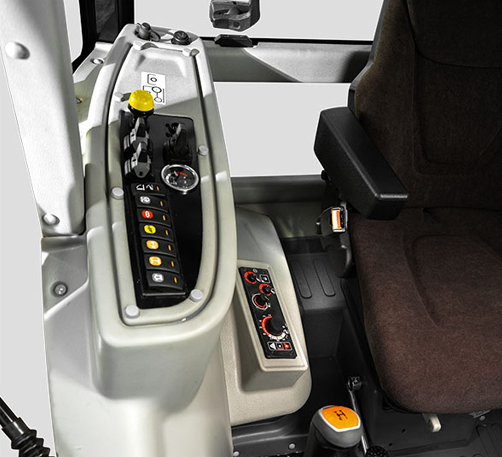 أزرار التحكم في عمود الدوران والنظام الهيدروليكي المتموضعة على الطين الأيمن والأيسر.