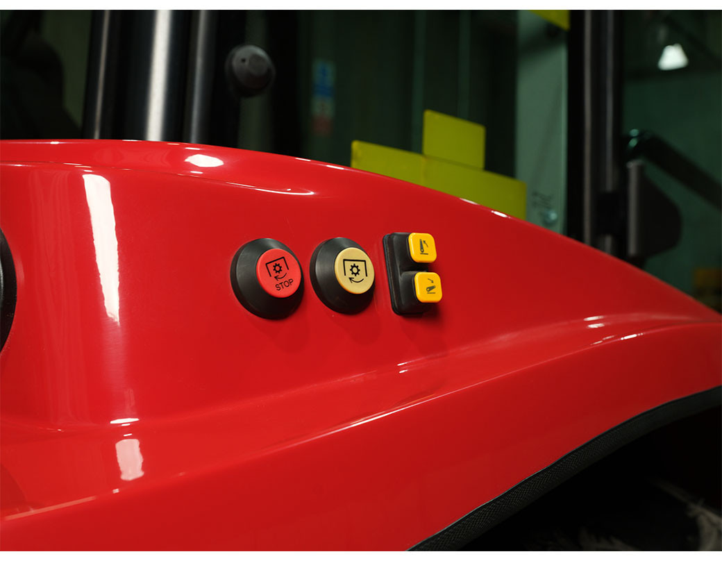 Controlado electrohidráulicamente, ofrecido como estándar facilidad de uso con tracción en dos ruedas, toma de fuerza, toma de fuerza de carretera, bloqueo del diferencial delantero, compresor y ajuste de sensibilidad de avance-retroceso.