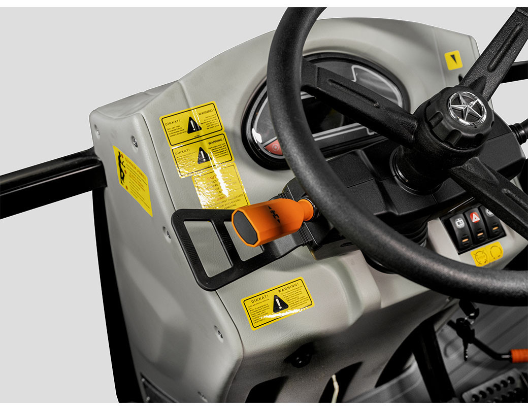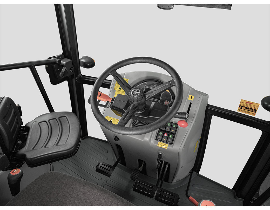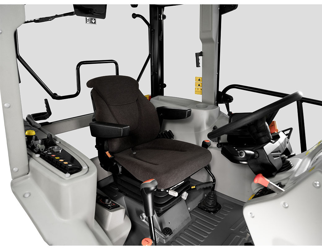 Facilidad de uso con tracción en dos ruedas controlada electrohidráulicamente, toma de fuerza, toma de fuerza de carretera, bloqueo del diferencial delantero, compresor y ajuste de sensibilidad de avance-retroceso que se ofrecen como estándar.