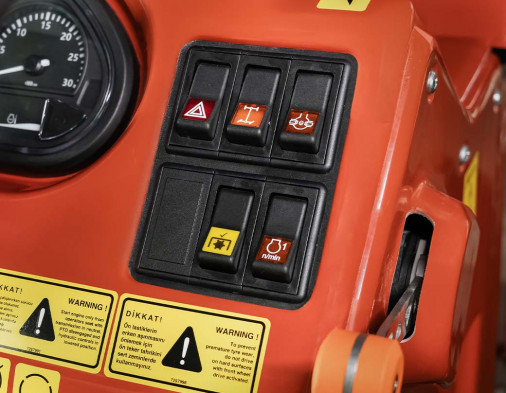Operatörün sağ tarafına konumlandırılan ergonomik Kuyruk Mili Devir Kolu ile etkin kullanım.